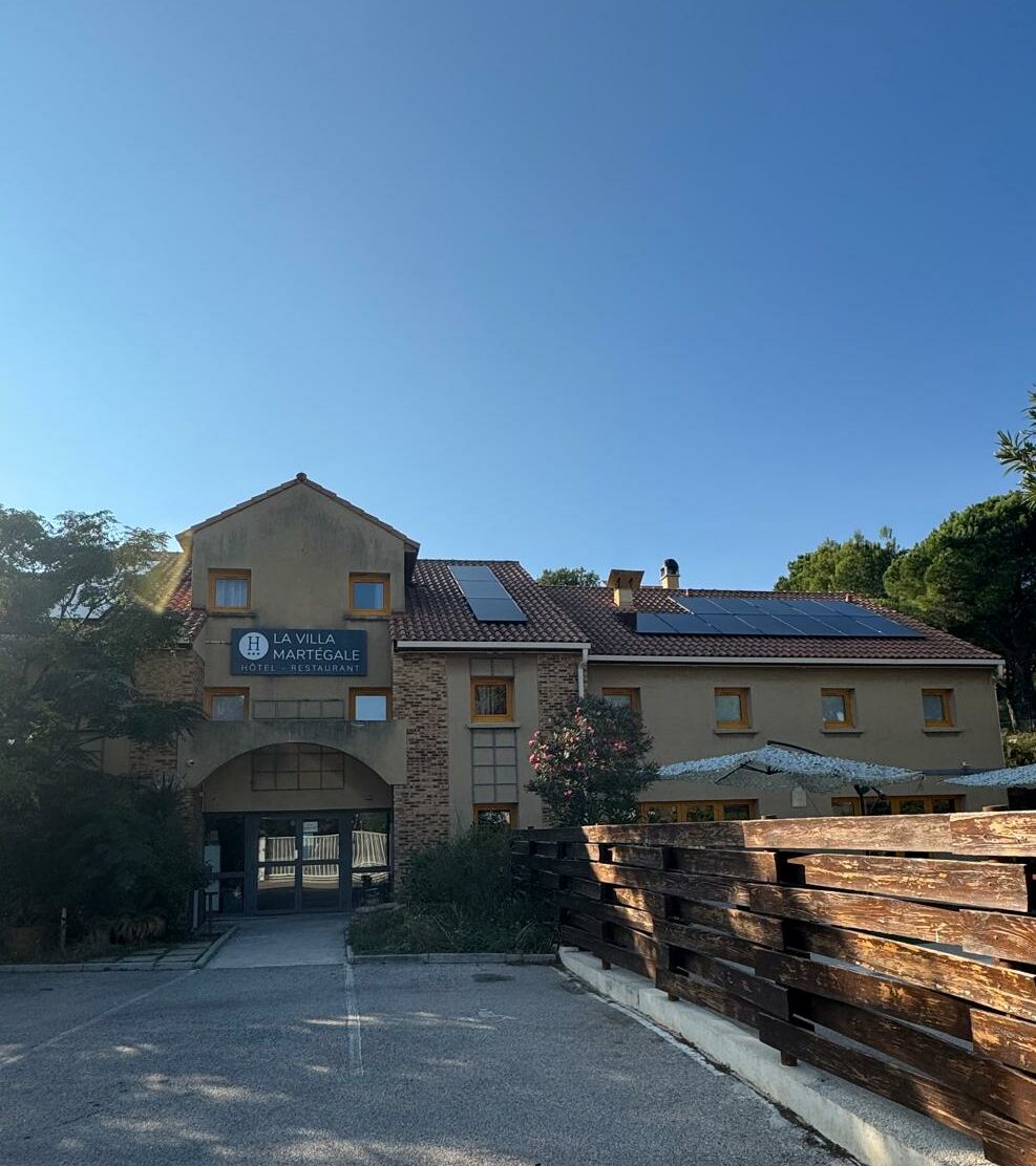 Installation de 70 panneaux solaires photovoltaïques de 500WC de la marque Alangis sur le toit de l’Hôtel Restaurant La Villa Martégale.