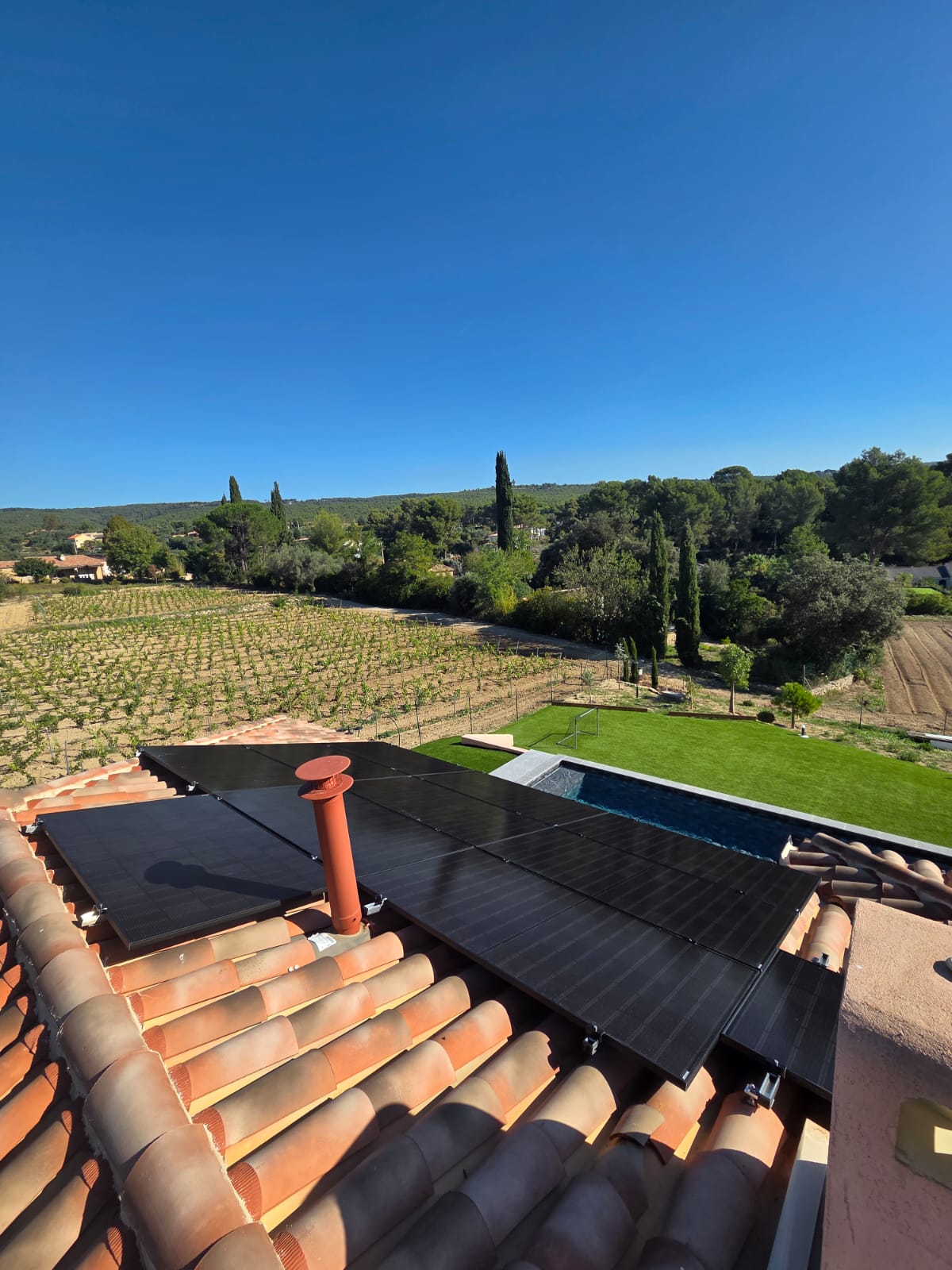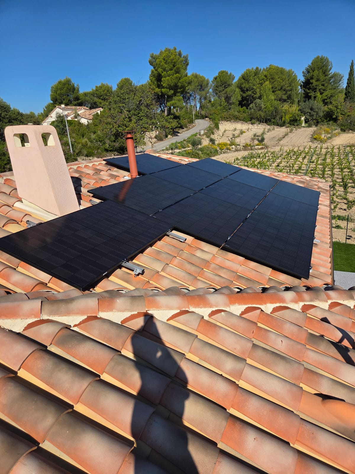 Installation de 18 panneaux solaires photovoltaïques Alangis de 500Wc, sur le toit d’une maison de particulier située au Castellet.