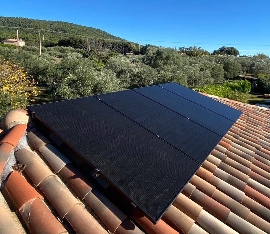 Installation de 4 panneaux solaires photovoltaïques de 500Wc sur une maison à Brignolles.